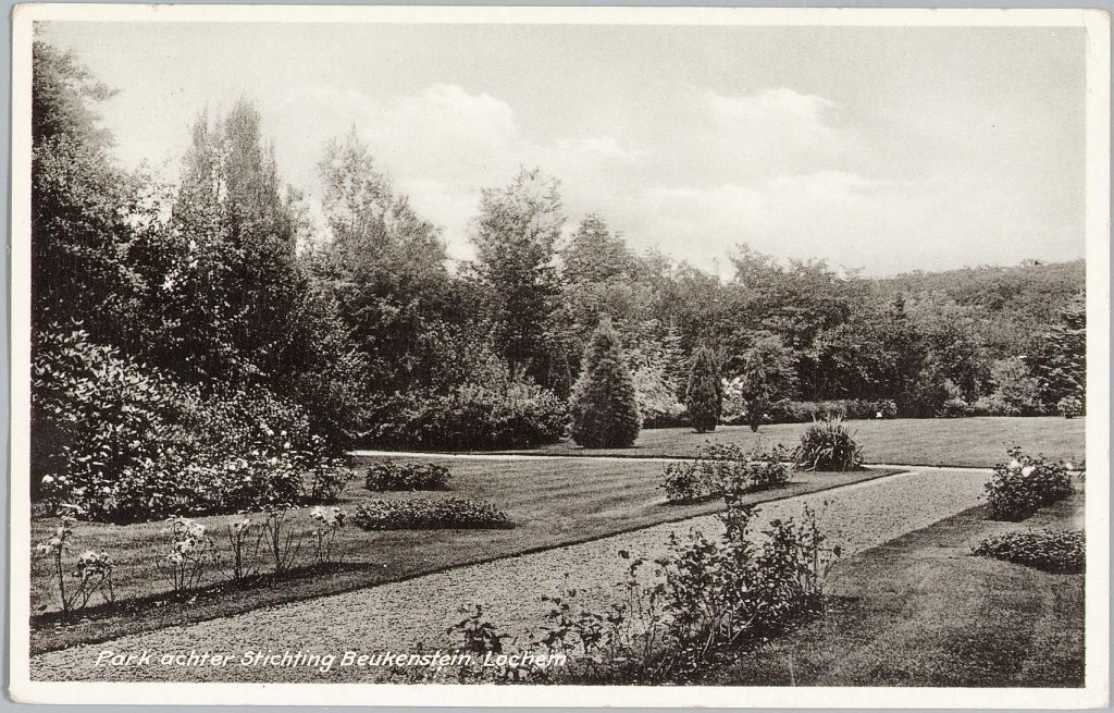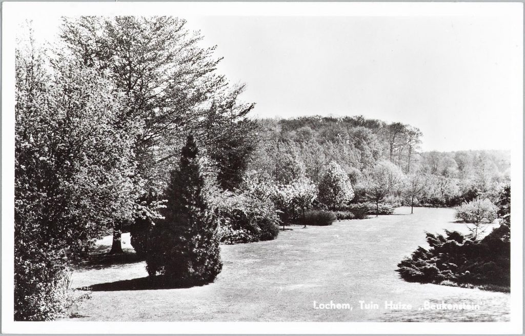 De tuin is in de loop der jaren flink veranderd. Hierboven ziet u ansichtkaarten met oude foto’s van de tuin aan de achterzijde van Beukenstein.